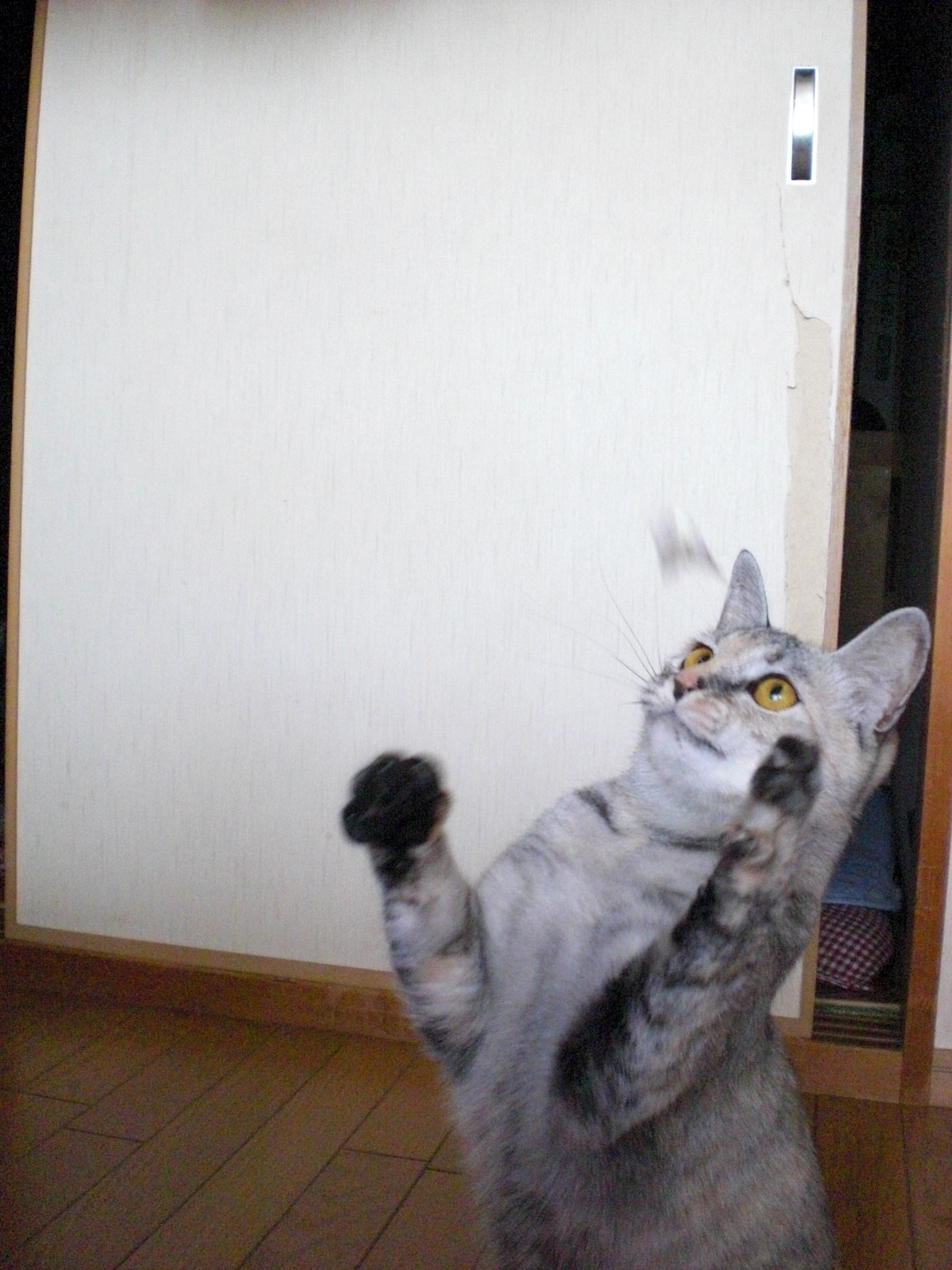 外が何やら騒がしいので、 猫の目もまん丸です!!