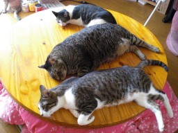 ←夜には母が ニャース、リーヤ、バロンの順番で 入れてくれました。