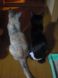 すきあらば、侵入しようとしますが、 今日は外が怖いのか、おとなしめ。