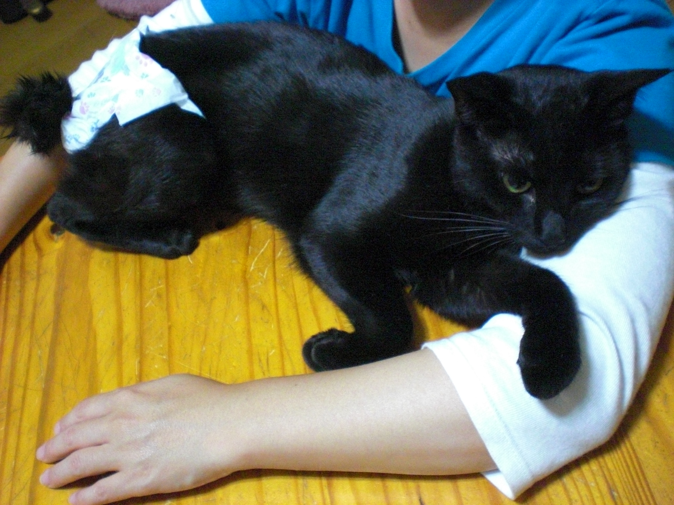 おそらく、しっぽが短いのでバロンでしょう。 まだ身体の障害も、わかっていない状態なので、オムツもしていません!!